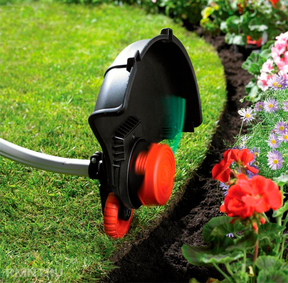 Dans ce taille-bordures électrique, le moteur est situé sur le dessus, il est donc plus facile de guider l'accessoire de travail. Sa puissance est de 950 W, ce qui lui permet de travailler confortablement avec du fil de pêche de 2 à 2,4 mm. Soit dit en passant, le kit comprend exactement une ligne de pêche de 2 mm de long de 15 m.En un seul passage, l'unité vous permet de tondre une bande de 35 cm de large.Notez que, contrairement aux appareils avec un emplacement moteur inférieur, il ne s'agit pas d'une ligne droite tige, mais incurvée, ce qui augmente la commodité des manœuvres entre les plates-bandes.Certes, une telle conception incurvée ne permet pas à la tondeuse d'accélérer à plus de 7500 tr / min.