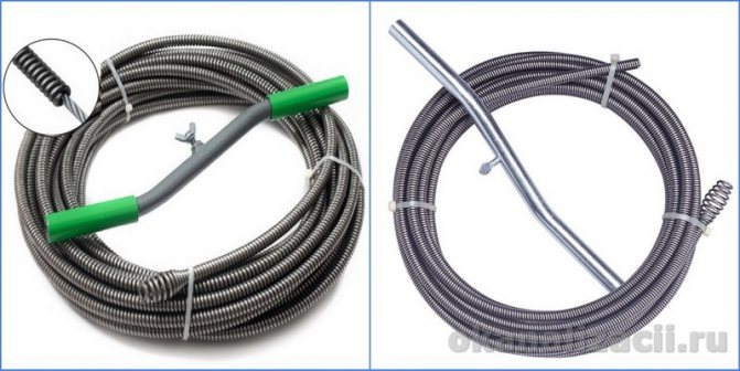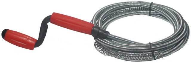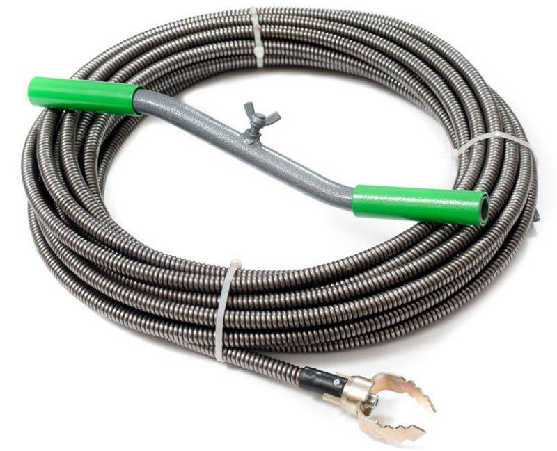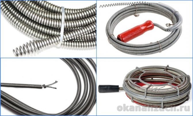 Câble à ressort pour le nettoyage des égouts est ressort hélicoïdal creux en fil d'acier. Pour faciliter l'utilisation, il y a une poignée à une extrémité du luminaire. Le diamètre du ressort est d'au moins 9 mm. Un tel produit est utilisé pour nettoyer les tuyaux dans les appartements.