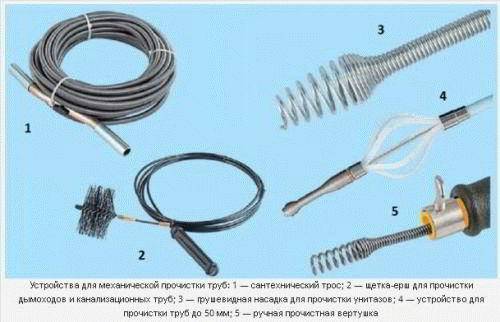 Pour un usage domestique, un câble, un câble flexible, à ressort ou à ressort est utilisé pour nettoyer l'égout de ses propres mains ou d'un appareil sous la forme d'un ruban d'acier.