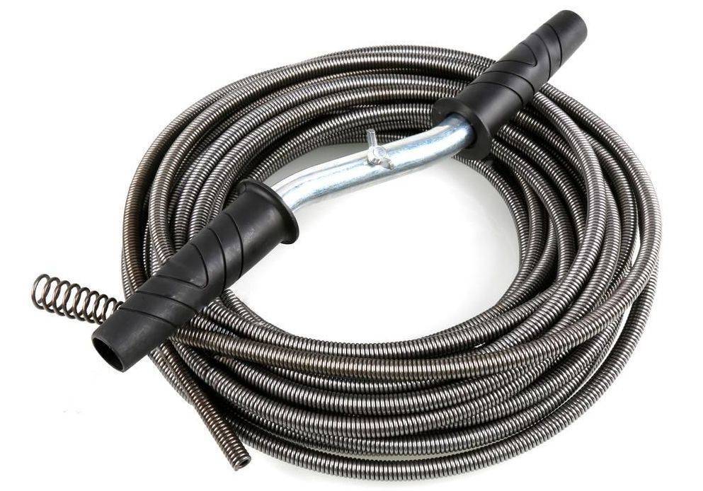 Un câble de plomberie flexible (également appelé arbre flexible) - sa base est une tige métallique sur laquelle une spirale métallique est enroulée, parfois en plusieurs couches. Une poignée est attachée à l'une des extrémités, qui est tournée dans une direction lors de l'élimination du blocage. Ainsi, le sabot est décomposé et poussé plus loin dans le tuyau vers une zone plus large. Longueur - jusqu'à 60 m, diamètre - jusqu'à 28 mm.