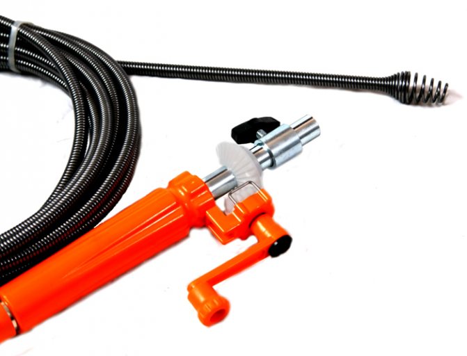 - Les outils électriques sont des unités monobloc utilisées pour éliminer les blocages dans le réseau d'égouts de diamètre considérable, ainsi que dans les conditions les plus difficiles. Les appareils électriques consistent en un câble enroulé sur un tambour, une pointe, une poignée de type pistolet avec une perceuse qui y est connectée. Le produit est placé dans le tuyau, en ajustant la vitesse de la perceuse, vous pouvez éliminer tout blocage.