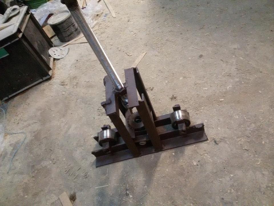 - Mettez des roulements sur l'arbre de pression et assemblez la structure de la presse avec des butées latérales à partir de bandes ou de canaux.