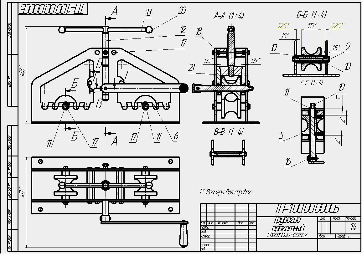 La séquence d'actions lors de l'assemblage d'une cintreuse de tuyaux maison avec un rouleau presseur central sera la suivante: