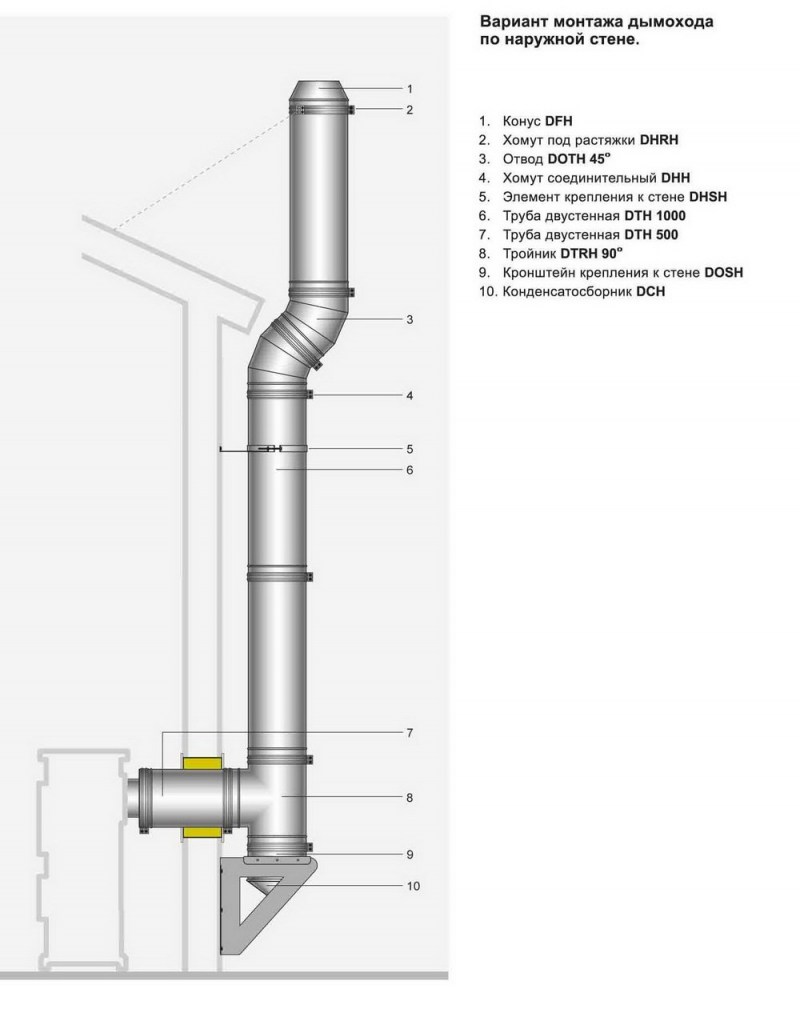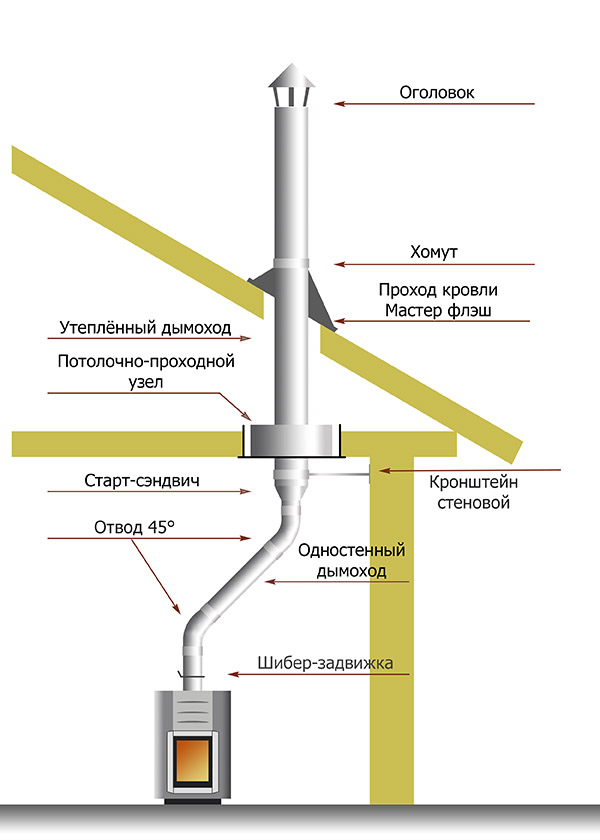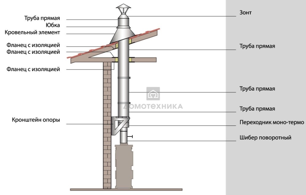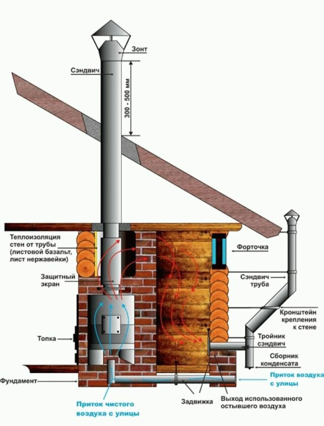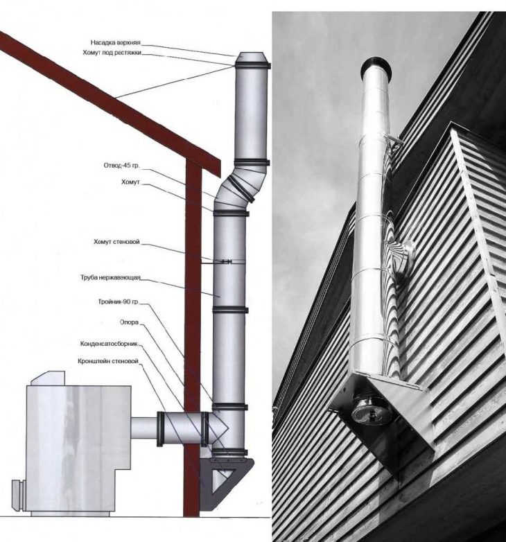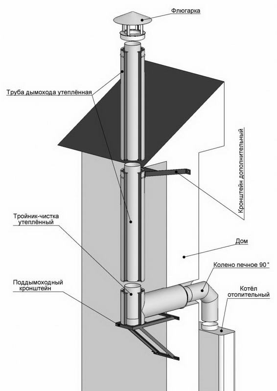 Par exemple, lors de l'installation d'un sandwich moderne, il est obligatoire d'installer une porte (amortisseur de four), des collecteurs de condensat, des révisions pour le nettoyage et l'élimination des résines de condensat.
