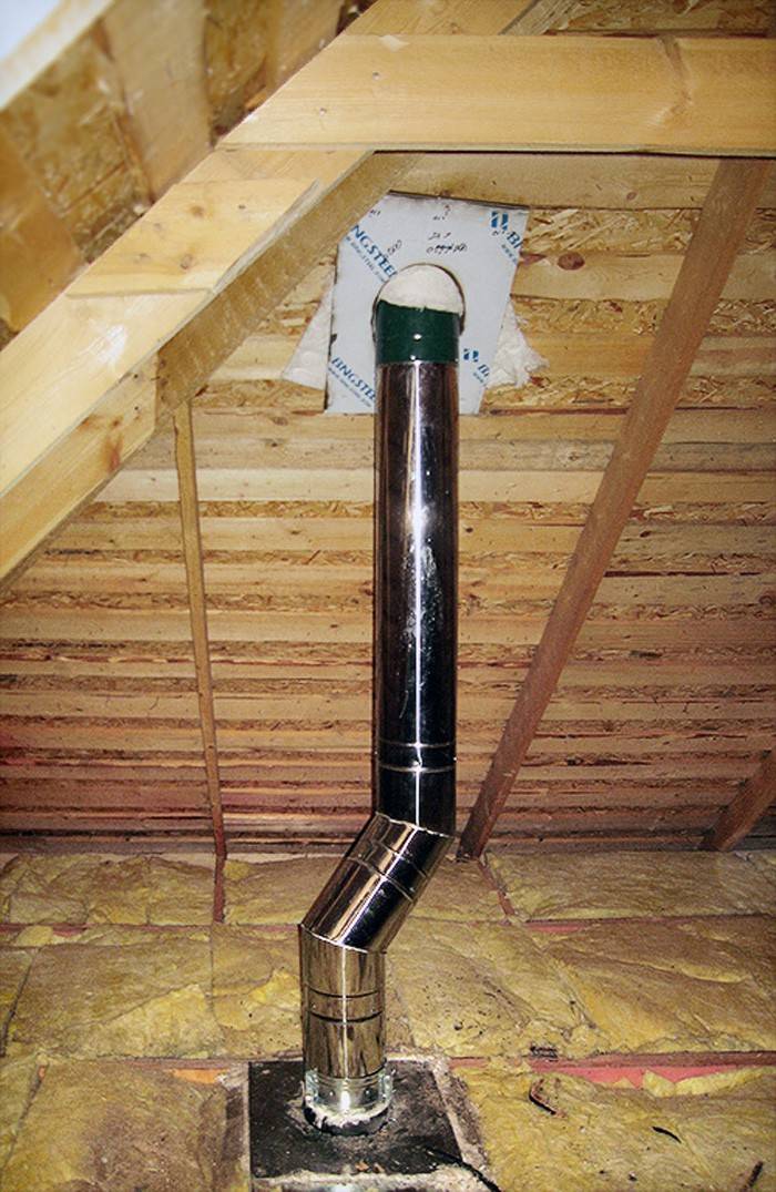 | Le tuyau est situé à une distance de 1500-3000 mm de la crête. | Le tuyau est amené au niveau du faîte du toit. |
