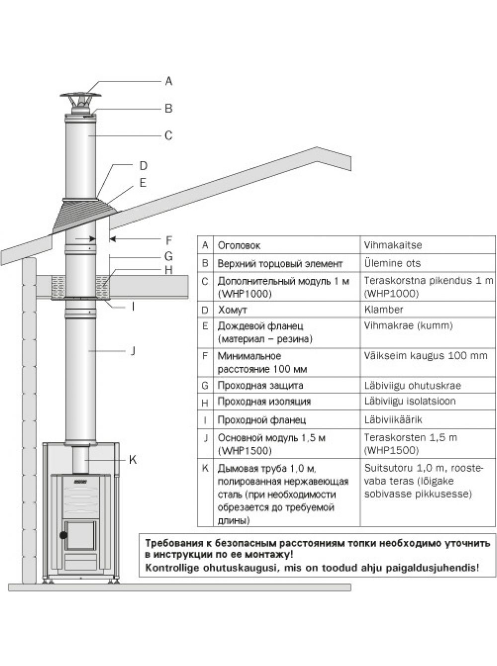 - la hauteur minimale du tuyau est de 5 m, il est considéré de la grille (brûleur) à la coupe supérieure;