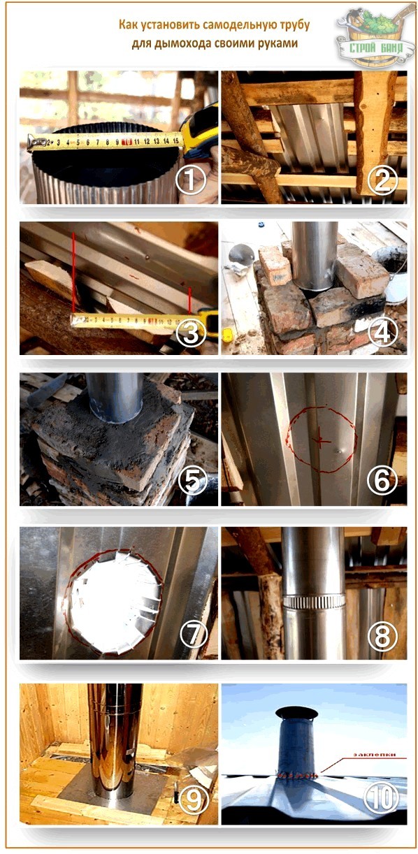 Au-dessus du toit, les cheminées sont placées verticalement. Par conséquent, les précipitations peuvent facilement pénétrer à l'intérieur de ces tuyaux. Pour éviter que cela ne se produise, les cheminées sont recouvertes par le haut de capuchons de conception spéciale qui n'empêchent pas la fumée de s'échapper vers l'extérieur.