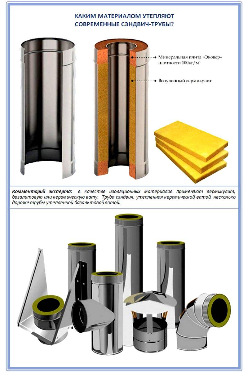 Il n'y a pas si longtemps, des tuyaux de cheminée en vermiculite sont apparus en vente. Il s'agit de tuyaux en acier inoxydable recouverts à l'intérieur d'une couche de vermiculite de 5 cm d'épaisseur.Ce minéral a une faible conductivité thermique, il s'agit donc en fait d'un isolant thermique naturel. De plus, la vermiculite est absolument inerte aux produits de combustion agressifs.