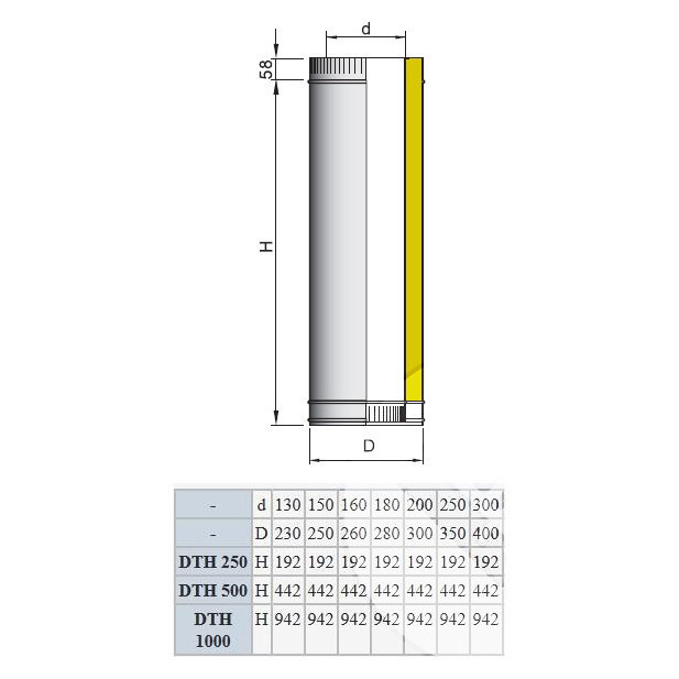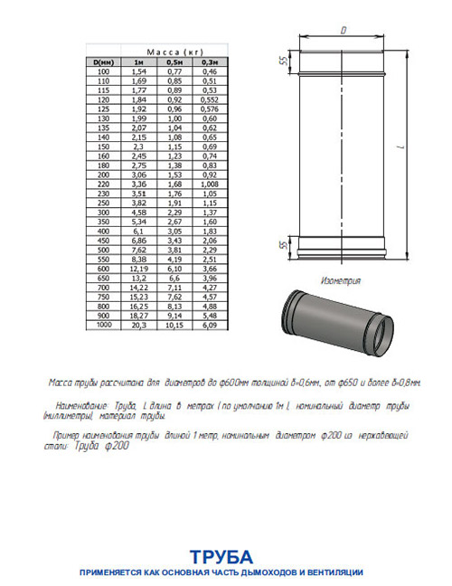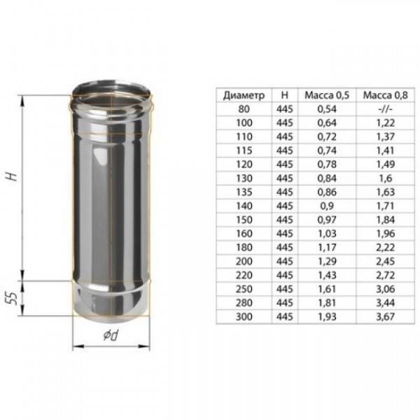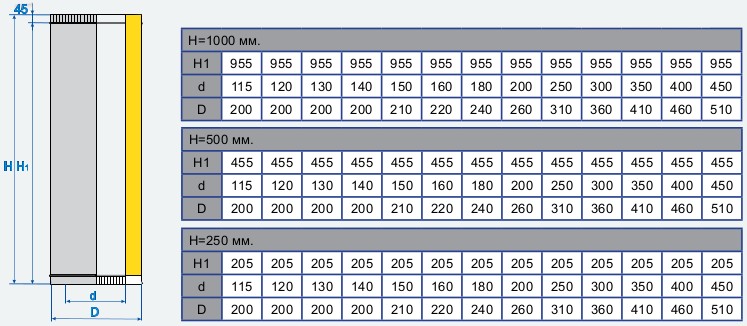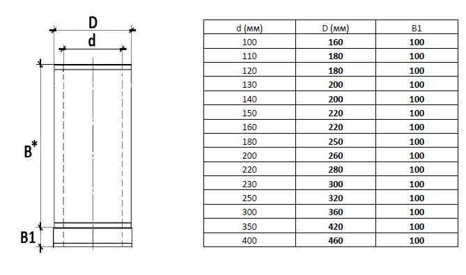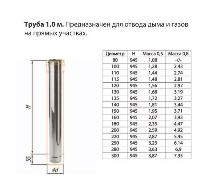 La puissance optimale dans ce cas est jusqu'à 3,5 kW. Si un équipement de four plus puissant est utilisé, le diamètre du tuyau doit être augmenté. Diamètre des cheminées sandwich pour chaudières ou fours d'une puissance de 5 kW - 180 mm, 7 kW - 220 mm