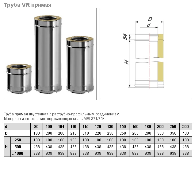 - 321 et 316 Ti (08X18H12T et 08X17H13M2) sont un matériau universel utilisé dans la production de tuyaux capables de résister à des températures allant jusqu'à 8500C. Les cheminées en acier inoxydable de ces nuances ont une résistance élevée à la chaleur, aux acides et à la plasticité.