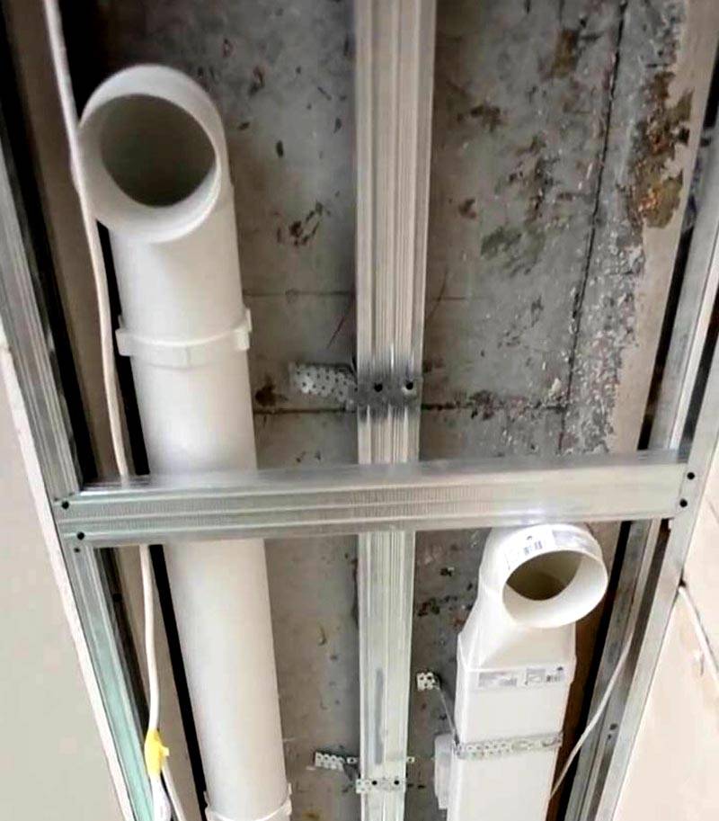 5. Le masquage complet est obtenu en posant des tuyaux à l'intérieur du faux plafond. Mais ce déménagement n'est pas toujours justifié, car vous n'aurez accès au pipeline qu'en démontant la structure du plafond.