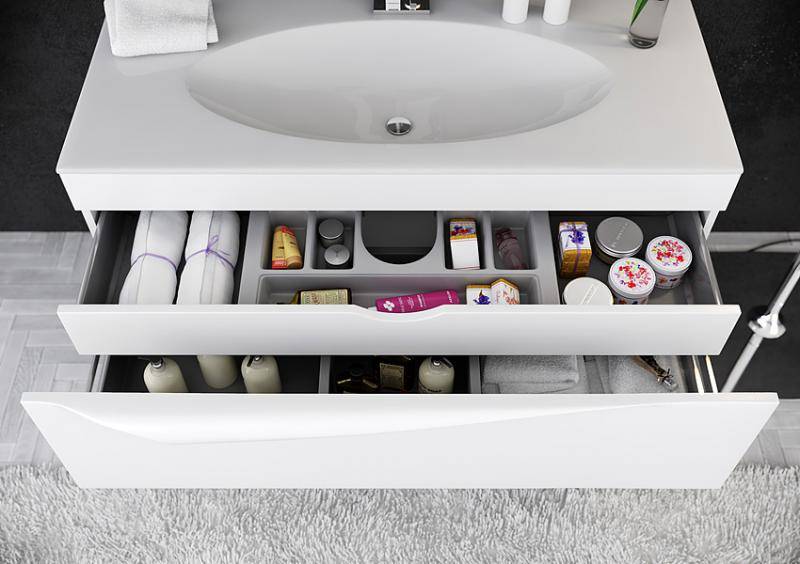 Lors du choix d'un meuble pour votre salle de bain, vous devez tenir compte d'un certain nombre de points importants. Tout d'abord, c'est la hauteur et la largeur du produit. Ils doivent correspondre exactement aux dimensions de la salle de bain pour que le meuble ne se « perde » pas dans une grande pièce ou ne paraisse trop encombrant dans une petite. La largeur optimale de l'évier est de 0,5 à 0,65 m, ce qui sera tout à fait suffisant pour utiliser la plomberie et ne pas éclabousser d'eau.