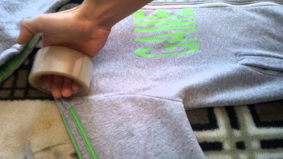 Un autre moyen non moins efficace est un rouleau avec une surface adhésive, qui aidera à nettoyer les vêtements des poils d'animaux. Tous les cheveux et cheveux restent sur le ruban adhésif, vous pouvez également utiliser la méthode folklorique, pour cela, vous devez envelopper une bouteille en plastique avec du ruban adhésif avec le côté collant vers l'extérieur et l'utiliser pour nettoyer les vêtements. Le moyen le plus simple, lorsqu'il n'y a rien à portée de main, vous pouvez vous humidifier les mains avec de l'eau et passer sur la surface contaminée, en récupérant toutes les peluches et la laine, il est conseillé de nettoyer la chose dans un mouvement circulaire.