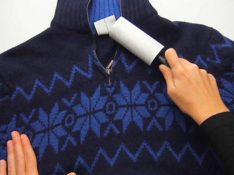Une attache textile a un principe de fonctionnement similaire. Vous pouvez acheter un rouleau spécial pour nettoyer les vêtements des cheveux. Il a une partie collante et enlève bien les granulés.