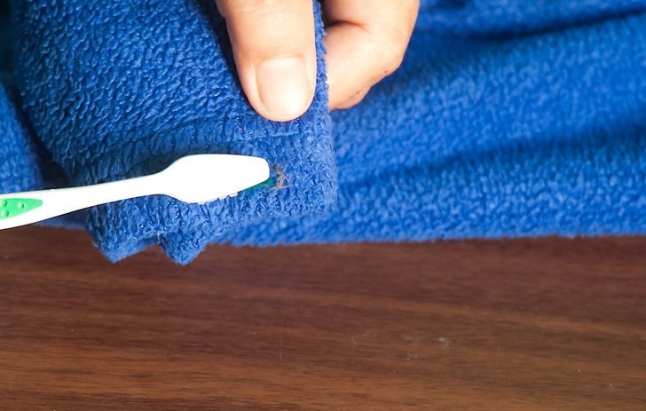 La méthode convient pour travailler avec des produits fabriqués à partir de matériaux naturels. Il peut être utilisé pour enlever le boulochage du pelage, mais le poil doit être doux. Vous pouvez également utiliser une brosse à dents pour enlever les touffes de fil des tissus délicats. Pour cela, vous devez :