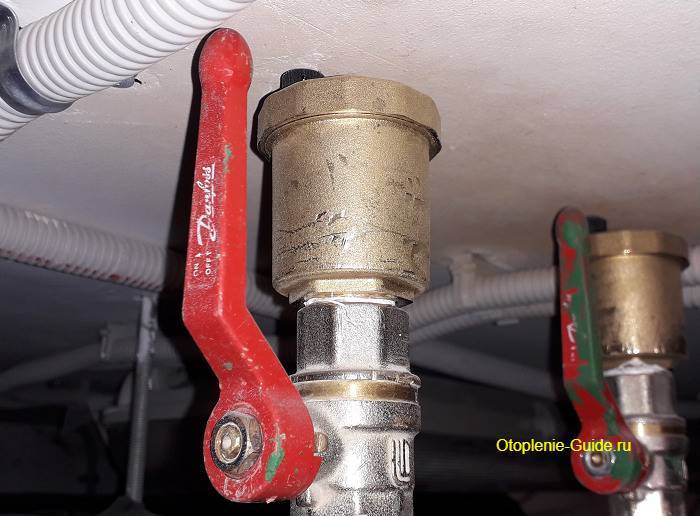 1. Ils sont examinés pour la présence de vannes, après quoi des bouchons ou des évents peuvent être installés.Dans le second cas, il n'y aura pas de frais, et dans le premier cas, vous devez acheter un robinet à tournant sphérique avec un filetage de la même taille que les bouchons.