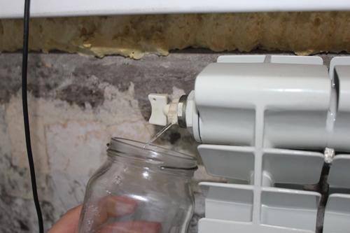Une fois l'emplacement du bouchon déterminé, il est nécessaire de tourner la vanne et d'obtenir la libération de l'accumulation d'air qui s'y trouve. N'oubliez pas de substituer un seau ou une bassine pour ne pas inonder les sols. Le signal que tout le bouchon d'air est sorti en toute sécurité est un filet d'eau suintant sous la valve. Pendant que l'eau bouillonne, cela signifie que des masses d'air continuent de s'échapper. Nous effectuons une procédure similaire sur d'autres batteries où se trouvent des bouchons.