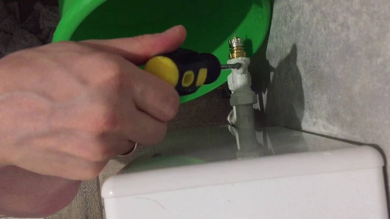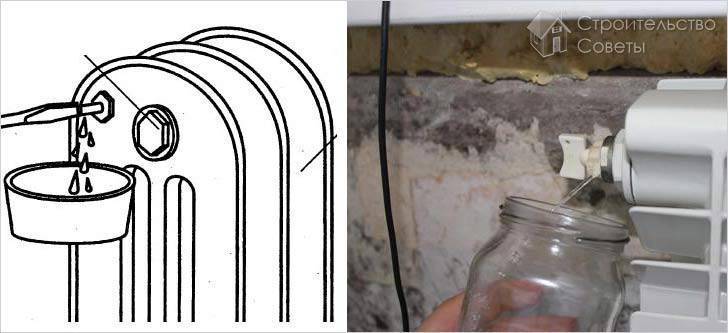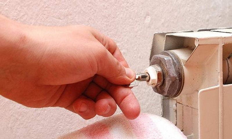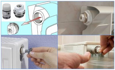 - Lorsqu'il est nécessaire d'éliminer l'excès d'air de la batterie, un ou deux tours de vis sont effectués - en conséquence, le flux d'air sous la pression du liquide de refroidissement sortira du trou latéral.