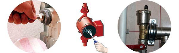 S'il n'est pas possible de couper le circuit d'eau de la chaudière et qu'il existe des dispositifs d'évacuation de l'air uniquement dans la partie supérieure de la ligne, il est nécessaire de vidanger le liquide de refroidissement, puis de remplir tout le volume d'eau requis. Avant de procéder à de tels événements globaux, il est recommandé de couper tous les appareils (à l'exception de la chaudière) et, en allumant la pompe, de purger la pression par l'évent le plus proche sur la ligne jusqu'à ce que du bruit ou des bulles apparaissent. L'absence de résultat indique la nécessité d'une vidange complète du liquide de refroidissement.
