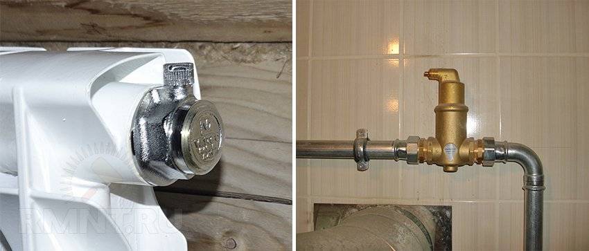 La pratique montre qu'il est idéal d'isoler le réseau chauffage de l'eau de environnement extérieur est impossible. L'air pénètre dans le liquide de refroidissement de différentes manières et s'accumule progressivement à certains endroits - les coins supérieurs des batteries, les virages des autoroutes et les points les plus élevés. D'ailleurs, ce dernier devrait être équipé de vannes de vidange automatiques montrées sur la photo (évents d'aération).