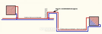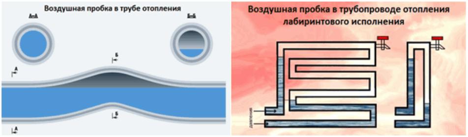 - Le réseau de canalisations d'une maison privée a été initialement conçu ou installé avec des erreurs - il n'y a pas de pentes et des boucles sont faites, orientées vers le haut et non équipées de vannes automatiques. Il est difficile d'expulser les accumulations d'air de ces endroits, même au stade du ravitaillement en liquide de refroidissement.