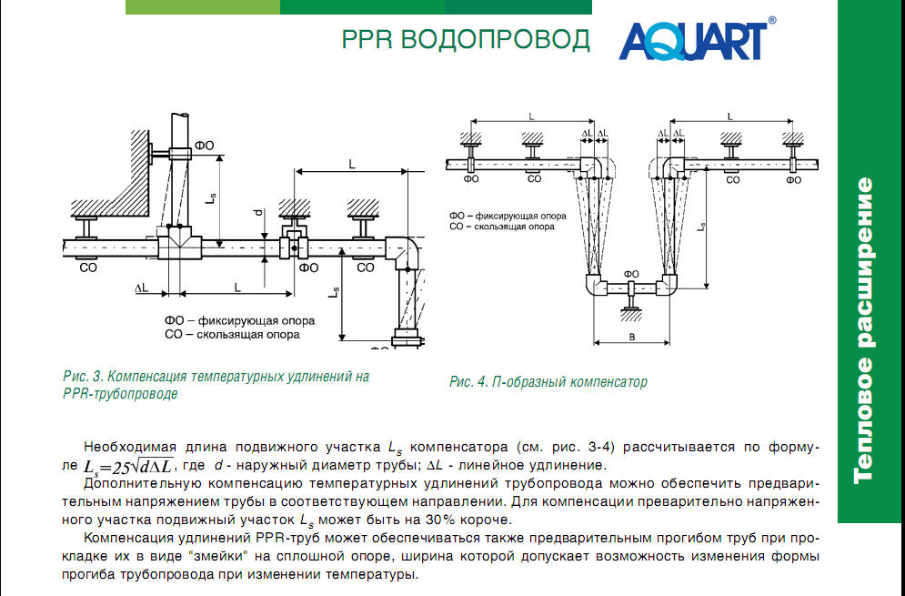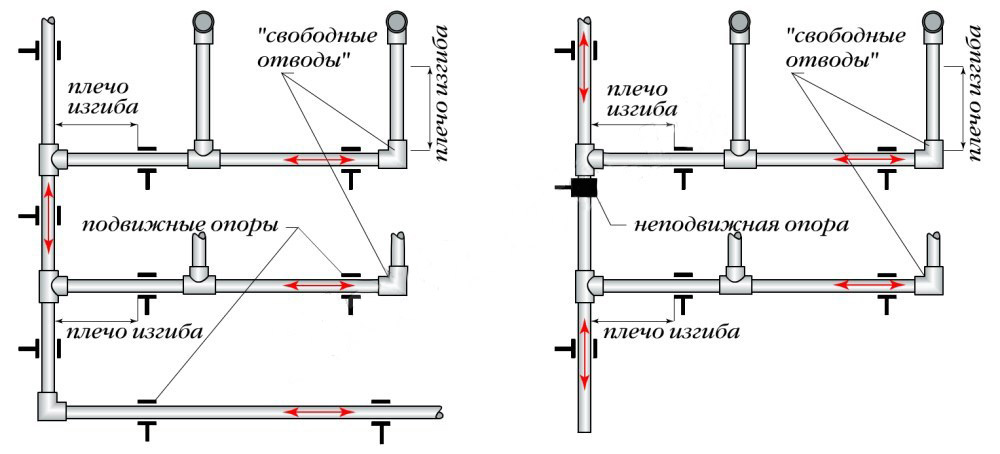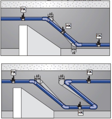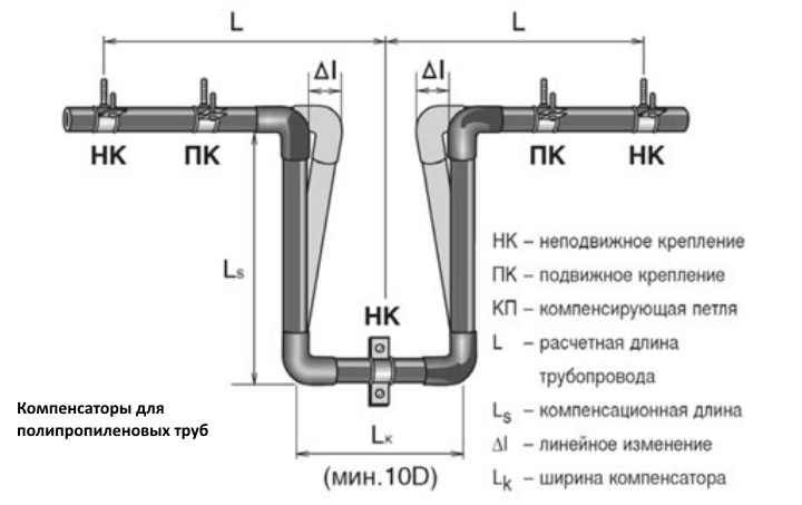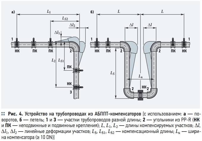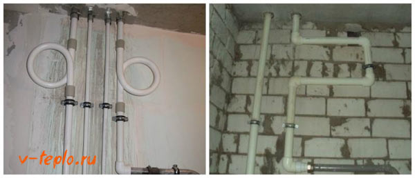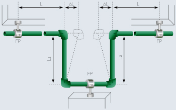 Dans certains systèmes d'eau chaude et de chauffage basés sur des produits renforcés et non renforcés, vous pouvez voir différentes méthodes de ce qu'on appelle. auto-compensation de la dilatation thermique due à la déformation élastique du polypropylène.