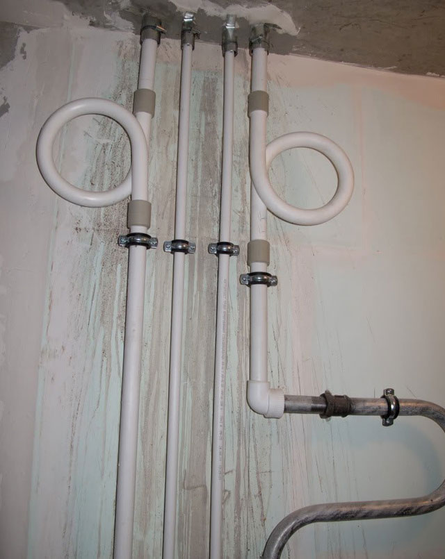 - Une tuyauterie excessivement longue sans le nombre approprié de fixations peut s'affaisser avec le temps. Cela s'applique aux petits objets chauffés, où il y a une puissante chaudière autonome, respectivement, l'eau dans la canalisation a une température élevée.