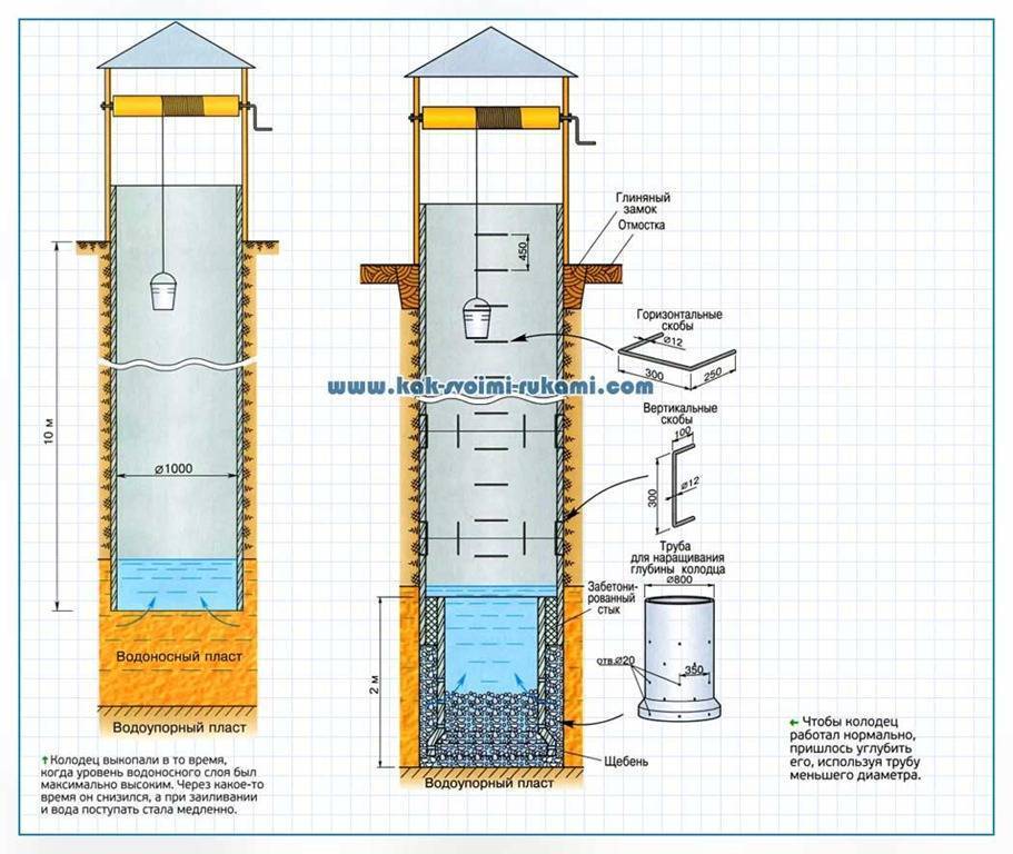 Le schéma suivant et le matériel vidéo proposé, qui faciliteront le processus de creusement d'un puits dans une maison de campagne en sol sablonneux.