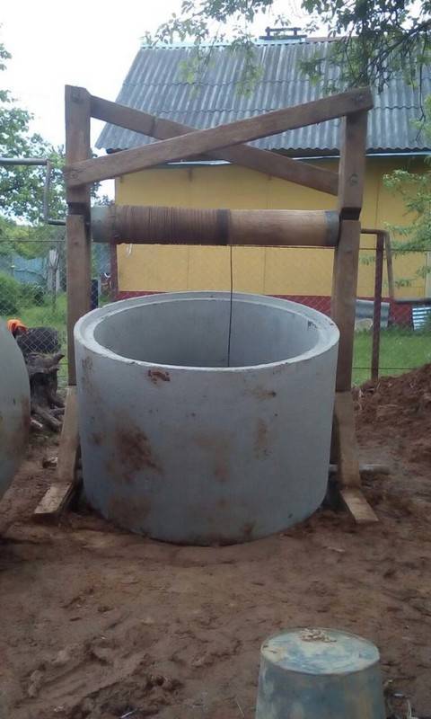 De plus, les anneaux en béton armé sont abaissés à tour de rôle dans le puits à l'aide d'un treuil. Leur utilisation vous permet d'organiser des murs de haute qualité.