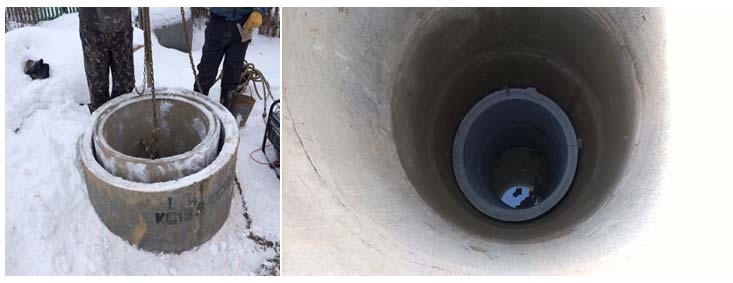 - Ensuite, un tel produit en béton armé est placé sur sa surface, le poids de la structure augmente encore plus et il tombe dans les recoins creusés de la mine. Ainsi, par la méthode d'installation alternée des anneaux, il est possible d'accéder correctement au fond de l'aquifère.