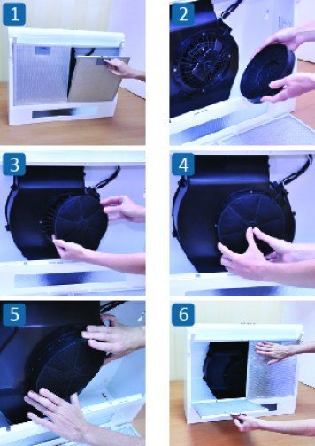 Le processus d'installation d'un filtre à charbon est similaire au schéma de remplacement. Ceux qui ne savent pas comment retirer le filtre de la hotte doivent suivre l'algorithme ci-dessous.