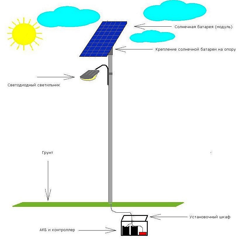Information utile : l'éclairage public fonctionnera plus efficacement dans une région avec le nombre maximum de jours ensoleillés et un climat tempéré.