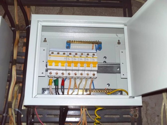 - raccordement de tous les éléments installés, en tenant compte du schéma joint, ainsi que le raccordement des phases d'entrée et du zéro sur les interrupteurs automatiques.