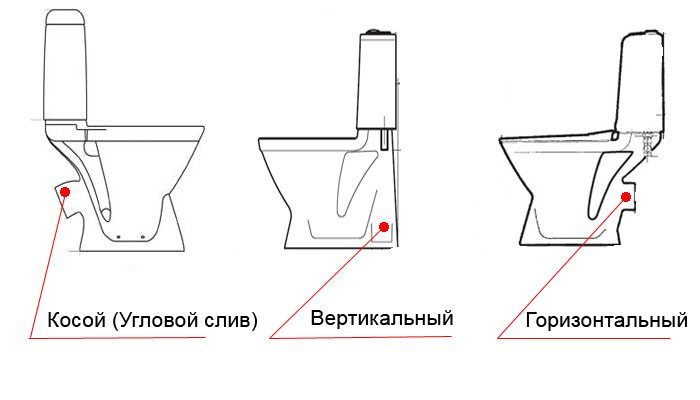 Fondamentalement, pour les salles de bains des appartements, les toilettes sont installées avec une sortie horizontale ou une sortie d'angle. Les produits à sortie verticale sont utilisés pour l'installation dans des maisons privées et dans certains bâtiments de l'ère stalinienne.