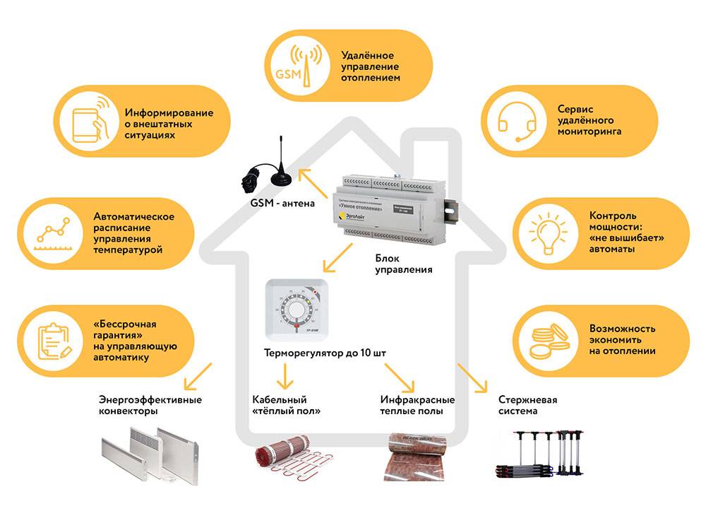 L'avantage est qu'à partir d'un smartphone, vous pouvez gérer non seulement le réseau le plus simple, mais également un réseau étendu - avec un chauffage par radiateur ou par convecteur, un système de "plancher chaud".