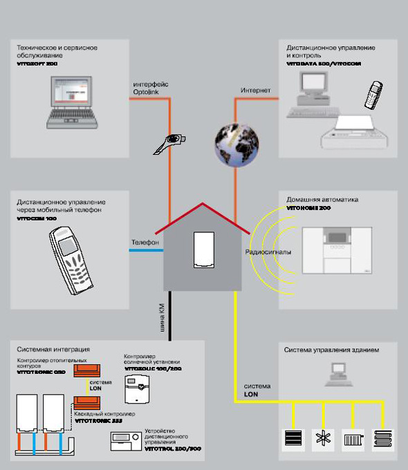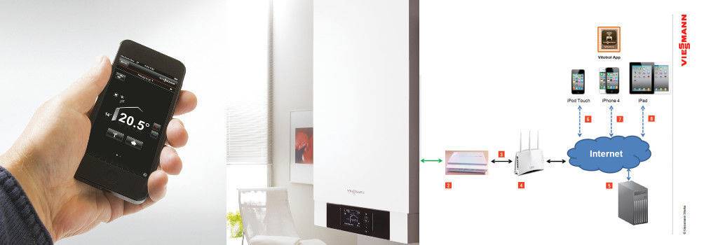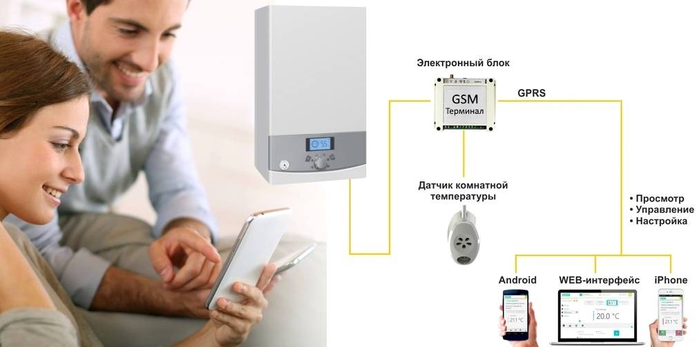 Si la chaudière à gaz est située là où il y a Internet, vous pouvez y connecter un thermostat qui peut fonctionner en ligne. De plus, le système fonctionne automatiquement si la température dans la pièce baisse. Les informations concernant le fonctionnement du système sont envoyées à l'hôte via le routeur.