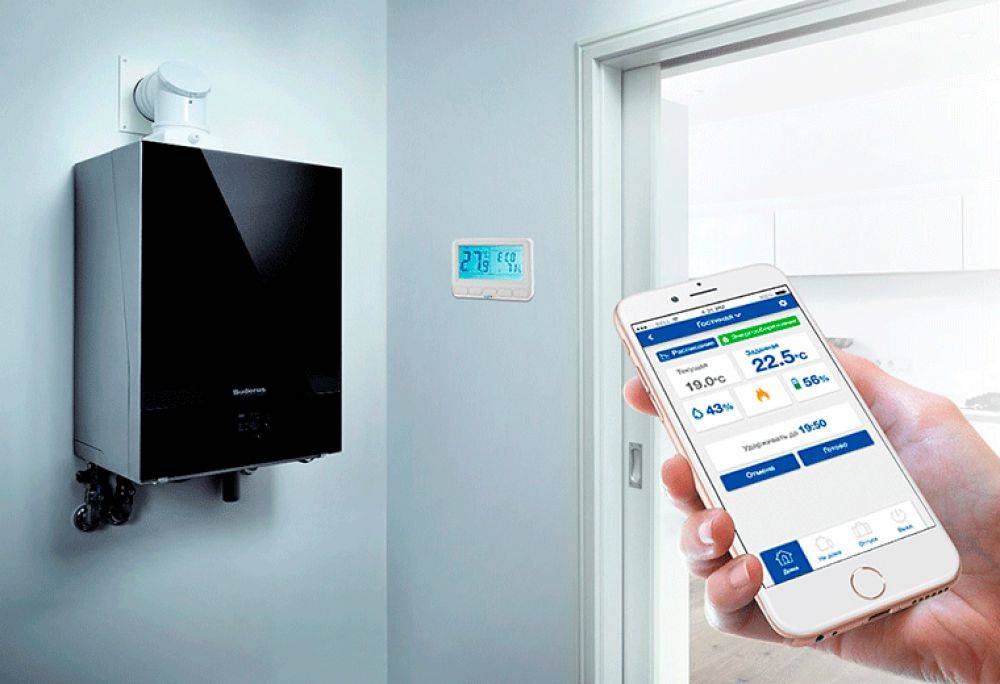 Le propriétaire surveille le fonctionnement du système de chauffage via un smartphone. Si nécessaire, il peut toujours apporter les modifications nécessaires au programme exécutable. Mais lors de l'utilisation de cette option, Internet haut débit est requis à la fois du côté de l'utilisateur et du côté de la recherche de l'équipement.