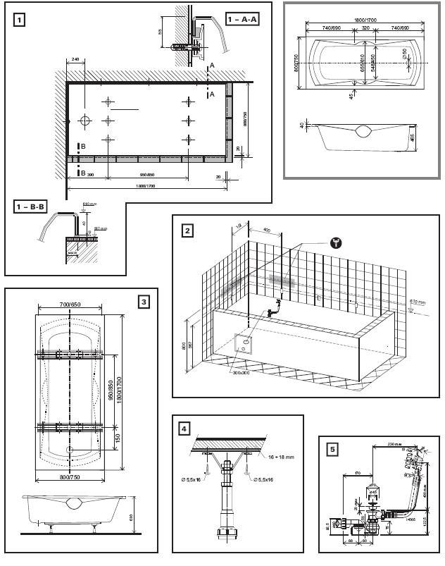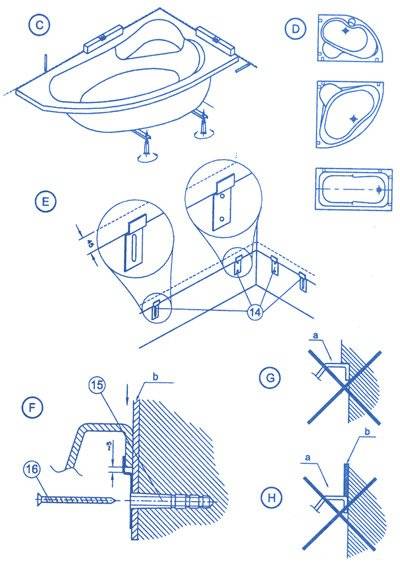 - supports avec lesquels la baignoire sera fixée au sol ou au mur.