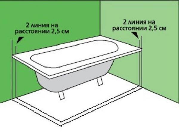 Essayez de dessiner aussi précisément que possible la ligne longitudinale de la salle de bain et les axes perpendiculaires à celle-ci pour une fixation ultérieure.