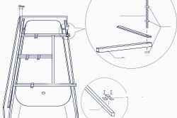 Un cadre est assemblé sur lequel repose le fond. Dans certains cas, il est soudé et ne nécessite pas d'assemblage. Le cadre est posé sur le fond de la baignoire inversée jusqu'à ce que rien ne soit fixé. Il est exposé exactement, car il doit être attaché.