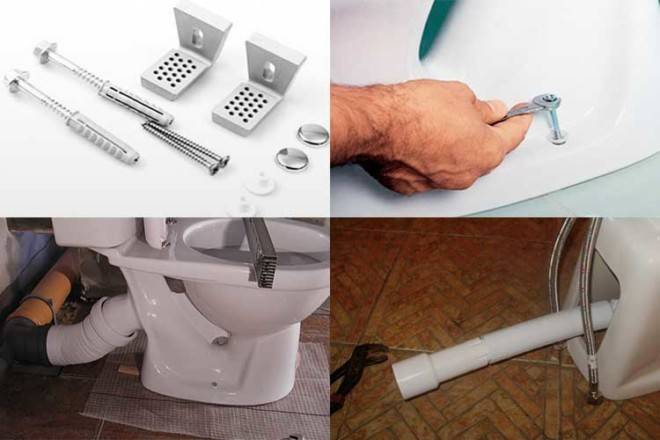 Des chevilles sont installées dans les trous finis. Le bidet est placé à la place de l'installation et fixé avec des boulons. Entre le boulon et les trous du système de bidet, il est préférable d'utiliser des joints en caoutchouc pour éviter d'endommager le couvercle de l'appareil sanitaire.