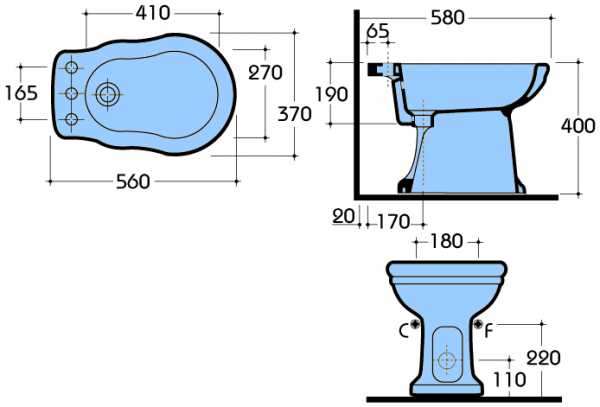 Avant d'installer le bidet sur le sol, nous devons déterminer visuellement où le placer. Bien sûr, il sera plus facile de simplement mettre la cuvette du bidet et de la déplacer jusqu'à ce que nous obtenions le résultat dont nous avons besoin. Mais avant d'acheter, et en principe, les paramètres moyens d'un bidet doivent être pris en compte.