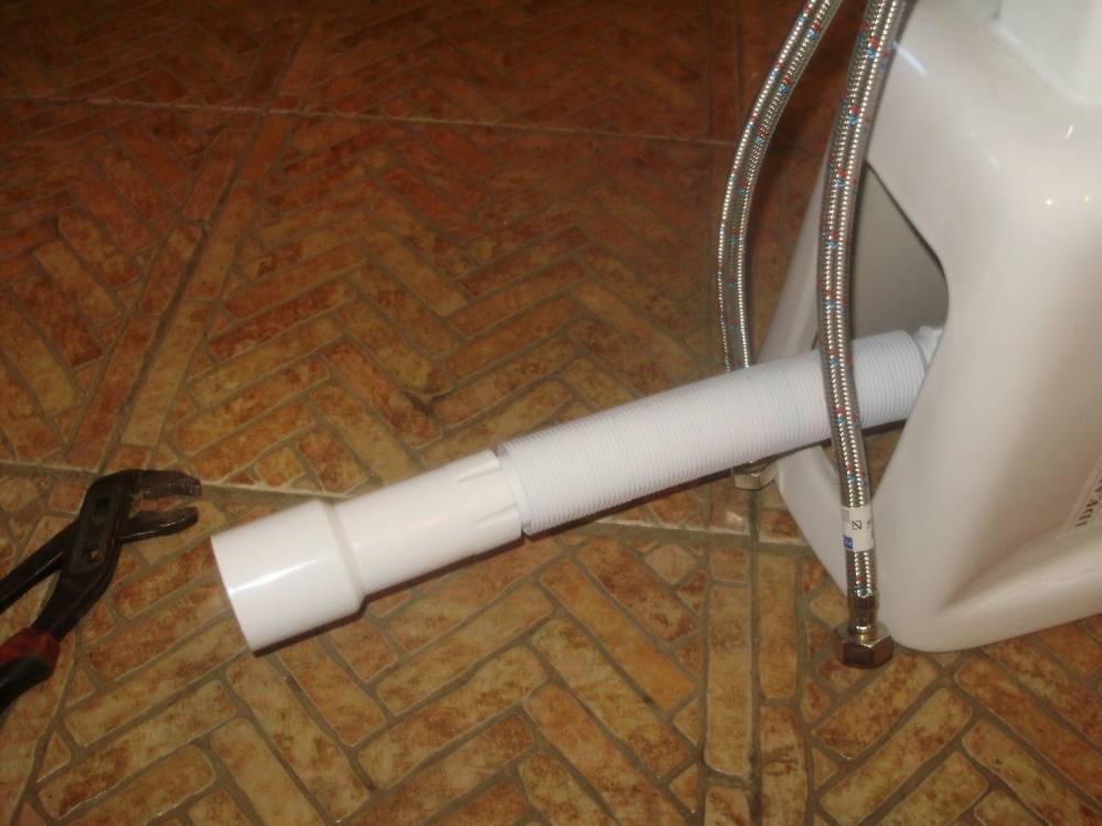 Nous fixons simplement la partie de montage des ondulations, sans oublier de l'enduire de mastic, au drain du bidet, et insérons l'autre côté des ondulations dans la sortie d'égout plus profondément et enduisons le joint de mastic. la sortie d'égout doit avoir un diamètre de 10. Par souci de clarté, je joins un schéma du raccordement du bidet à l'égout.