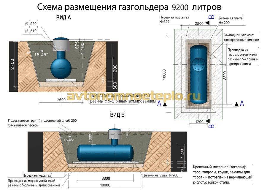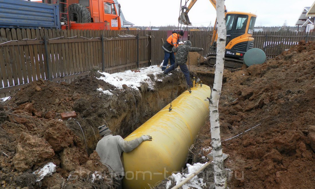 La part du lion des installations de réservoirs de gaz domestiques est traditionnellement réalisée dans la version souterraine. Une telle installation est considérée comme plus acceptable du point de vue de la sécurité, et un réservoir d'essence caché ne gâche pas la vue sur le paysage.