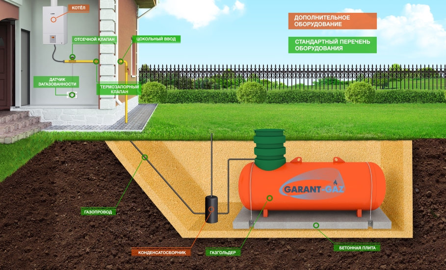 Installation et installation d'un réservoir de gaz pour une maison privée: la procédure de conception et de réalisation des travaux d'installationRéservoir de gaz au sol pour une maison privée