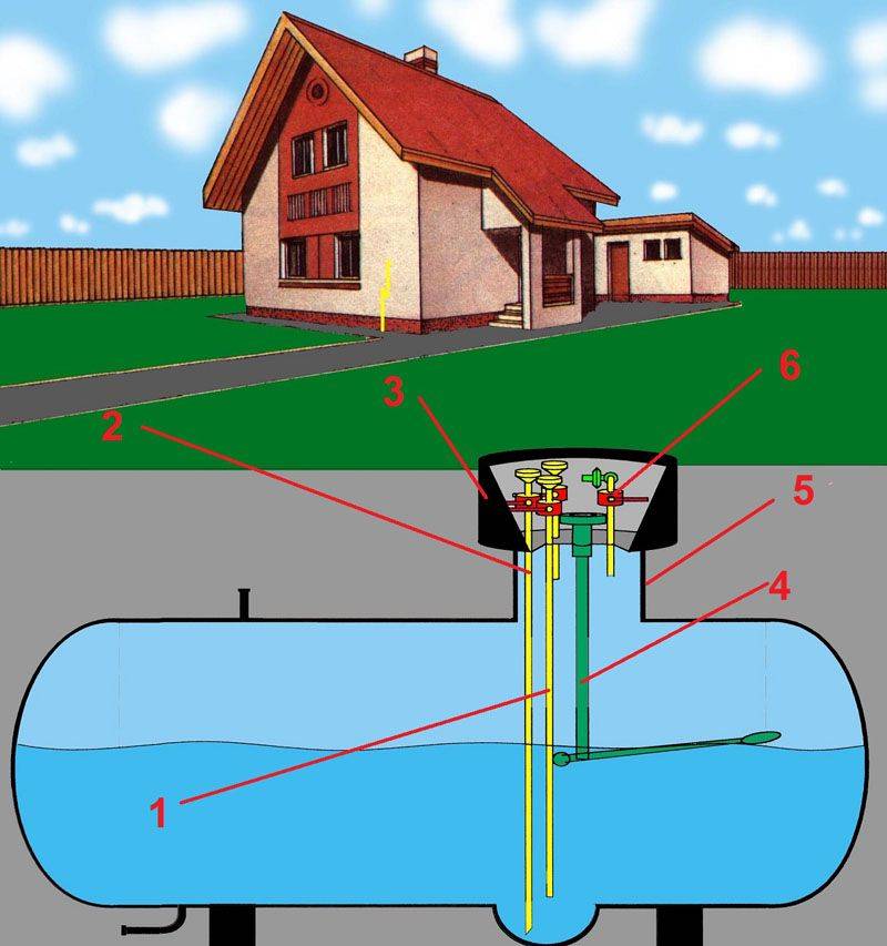 Le principe de base du fonctionnement du réservoir de gaz est le suivant: après évaporation, la fraction propane-butane pénètre dans le réacteur, où elle reçoit une pression suffisante pour une redistribution ultérieure le long de la jonction du gazoduc jusqu'au consommateur. Si vous calculez correctement la superficie et achetez un réservoir de gaz approprié, son contenu devrait être suffisant pour un an de chauffage régulier des locaux d'habitation sans ravitaillement supplémentaire.