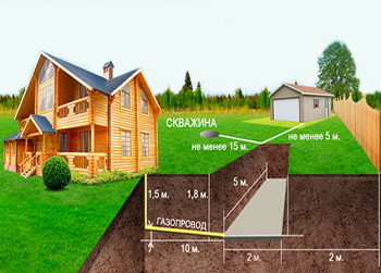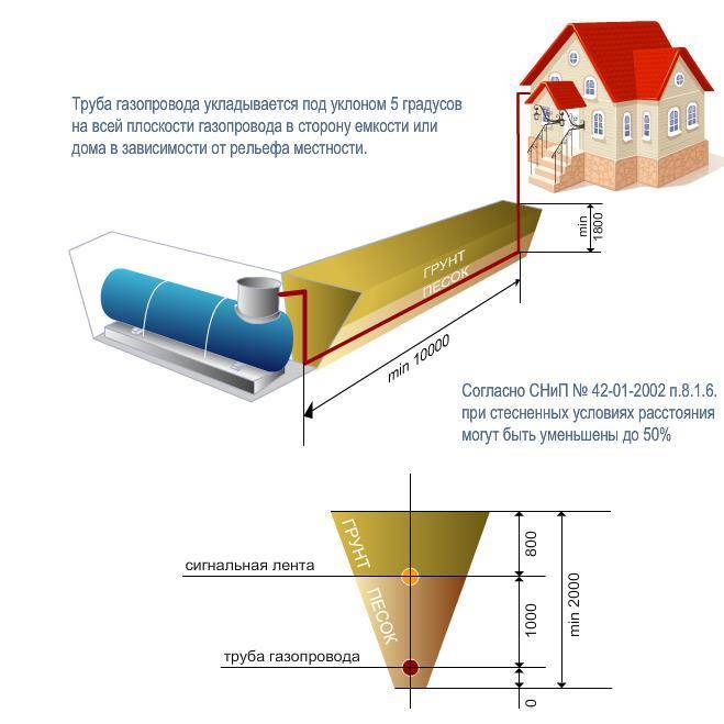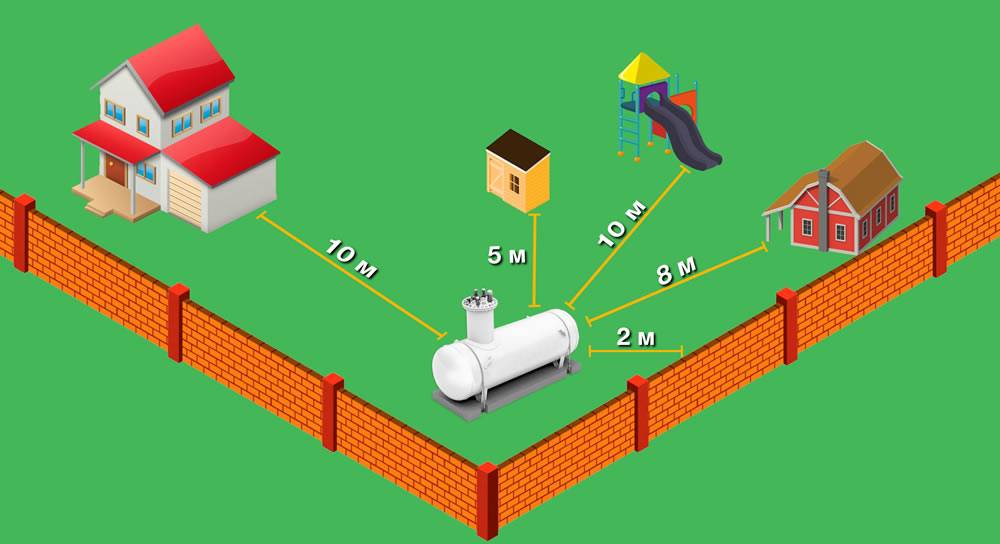 • la distance entre le réservoir de gaz et le bâtiment résidentiel est d'au moins 10 m, jusqu'à la fondation enterrée - au moins 2 m;
