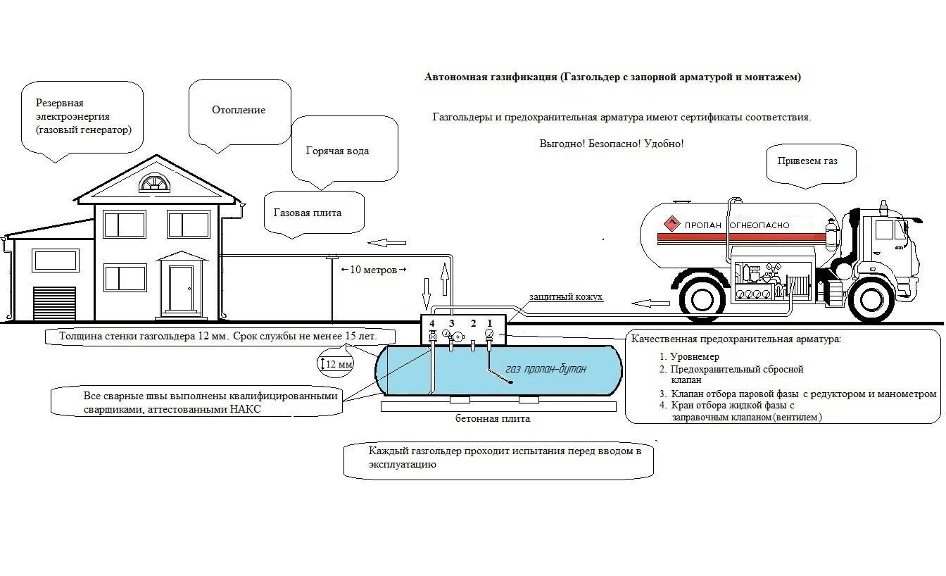 Installation et installation d'un réservoir de gaz pour une maison privée: la procédure de conception et de réalisation des travaux d'installationRéservoir de gaz mobile pour une maison privée