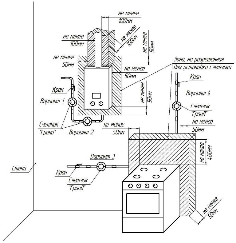 - Il est préférable d'installer un compteur de gaz dans la cuisine. Dans ce cas, un tuyau supplémentaire est introduit dans la pièce.
