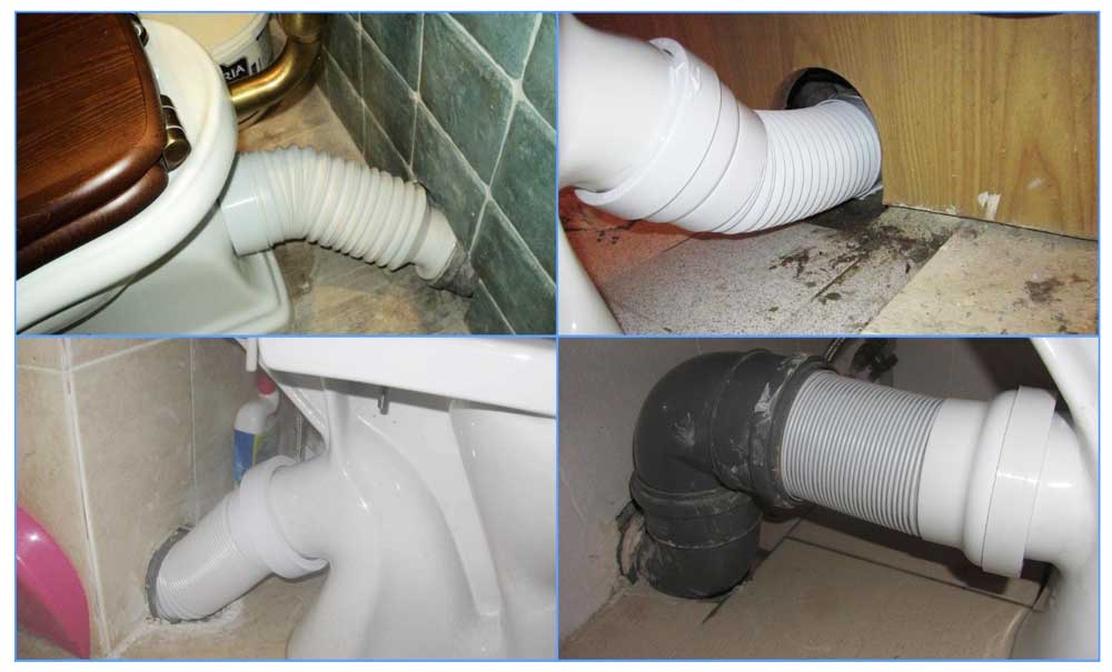 Dans les maisons à aménagement ancien, les sorties de toilettes sont souvent réalisées verticalement ou obliquement, et des cuvettes de toilettes à sortie horizontale sont installées dans les nouveaux bâtiments.